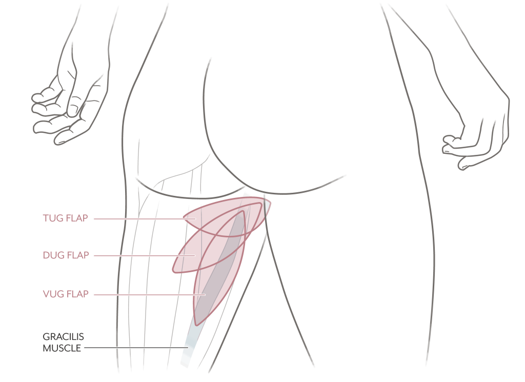 TUG (Transverse Upper Gracilis) flap reconstruction is a breast reconstruction procedure that uses tissue (skin, fat, and a small portion of muscle) from the inner thigh to create a natural-looking breast.